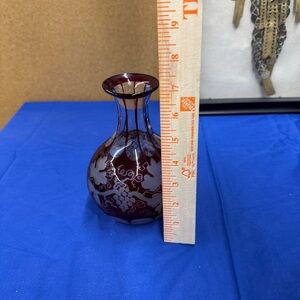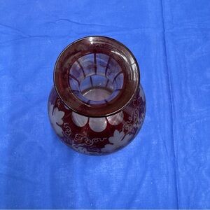 Vintage Ruby Red Bohemian Glass Vase with Grape Vine Design