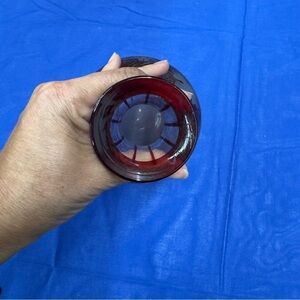 Enhance your home decor with this elegant red glass vase. Its intricate design adds a touch of sophistication to any room.