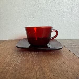 Vintage Ruby Red Coffee Mug Tea Cup with Square Saucer Place