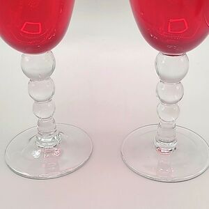 * Vintage ruby red fluted wine glasses