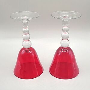 Vintage Ruby Red Fluted Wine Glasses, Set of 2