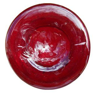These Vintage Ruby Red Footed Tumblers are a hand-blown pair featuring a very rough pontil or punt on the bottom and a rolled safety top rim.