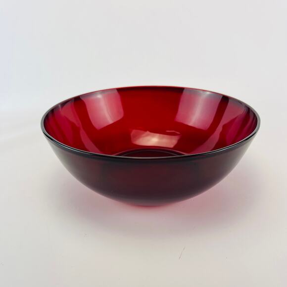 Vintage Ruby Red Glass Fruit Serving Bowl 8 1/2 x 3”
