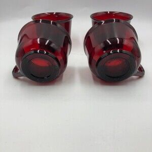 Vintage Ruby Red Glass Set of 4 Mugs Arcoroc France Collectible Glassware Elegant. Mugs are vintage pre-owned. Please see all photos for visible condition. No original box. No noticeable chips or cracks. This came from a large amount of pieces from once person - said wasn't used and sat in a box but I cannot confirm that. I don't know the age but was informed and based on research is vintage. Approximately 2.5 inches tall with 3 inch opening and with handle 4 inches wide. I will be listing the other pieces - please check them out if you collect ruby red glass. These are not super thick glass.