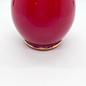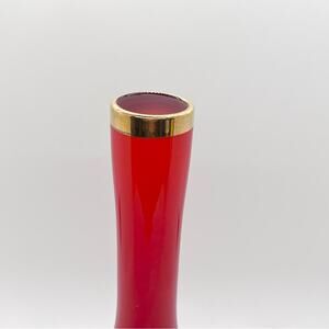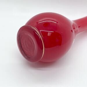 Vintage Ruby Red Glass Vase Art Glass 8.25x3" White Gold Trimmed Hand Painted