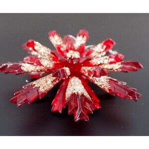 Vintage Ruby Red Gold Glitter Holiday Red 3D Snowflake Christmas Ornament 4.5"