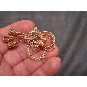 This exquisite vintage flower spray brooch features a graceful gold-tone metal design that elegantly loops and swirls. Adorned with vibrant simulated ruby red glass stones in a classic emerald cut, accented by sparkling clear rhinestones set in prong settings that add a touch of glamour and sophistication. Unmarked but well-made.