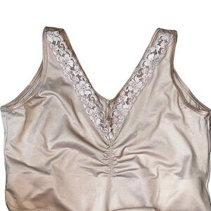 Vintage Ruby Ribbon Shapewear Lace Trim Camisole Size 34 Beige Control Top