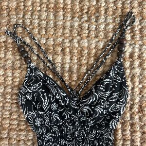 Vintage Ruby Rox absolutely stunning black and white floral maxi dress with wooded beaded straps and cross cross straps in the back. Size S. Can fit XS