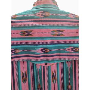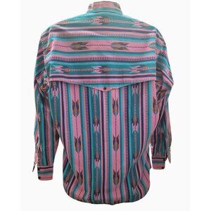 Vintage Ruddock Bros Western Shirt Large Aztec Print Pink & Teal 100% Cotton