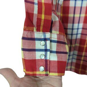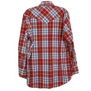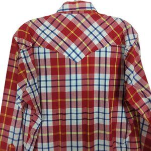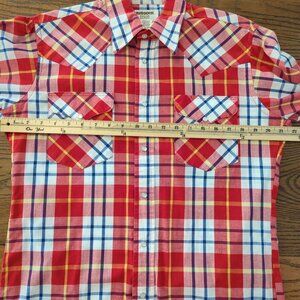 Vintage Ruddock Men's Long-Sleeve Shirt Red Plaid Western Shirt Pearl Snap sz M