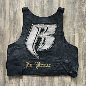 Vintage Ruff Ryders Leather Motorcycle Biker Vest 3XL-5XL DMX Big Pun Fat Joe