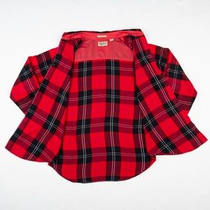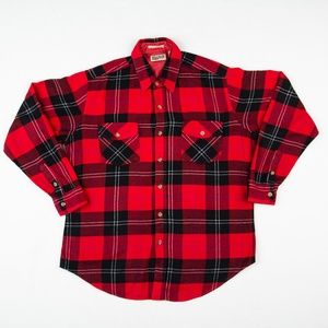 This is a like-new condition vintage plaid flannel button-down, in the colors red and black with white. REASONABLE OFFERS WELCOME!!!! PLEASE LOOK AT ALL PHOTO'S CLOSELY you will get the exact item that is pictured, PLEASE MAKE SURE TO LOOK AT ALL MEASUREMENTS (all measurements were done with the clothing laying flat). Please take note of the actual measurements and compare them with an item of clothing you own to make sure it will fit you.