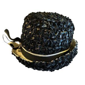 A cloche hat that's as chic as it is nostalgic. This vintage accessory adds a touch of classic elegance to your wardrobe while keeping your head stylishly covered. The intricate ribbon detailing paired with straw creates an irresistible look that’s sure to turn heads and make your hat the talk of the town.