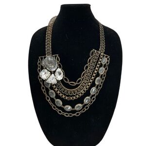 Vintage Brass Runway Necklace with Clear Rhinestones. Approx. 25 inches long.