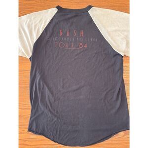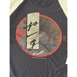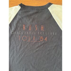Authentic vintage Rush concert shirt from the bands 1984 Grace Under Pressure Tour. Rare raglan/baseball tee style with contrast sleeves much harder to find than the standard short-sleeve tour tees.