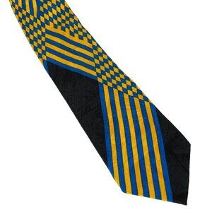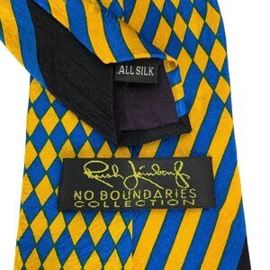 Vintage Rush Limbaugh No Boundaries Necktie Blue Yellow Geometric All Silk 90s