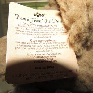 Bring home a piece of nostalgic charm with this vintage Russ Berrie "Bears From The Past" teddy bear. Fully jointed and dressed in a sweet floral dress, this collectible bear is perfect for display or gifting.