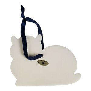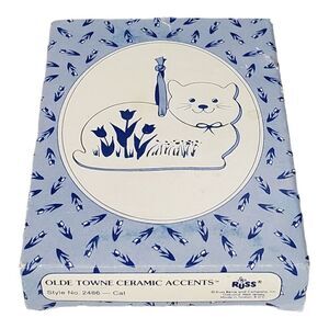 Vintage Russ Berrie Cat Ornament Blue Ceramic Floral Christmas Collectible Gift