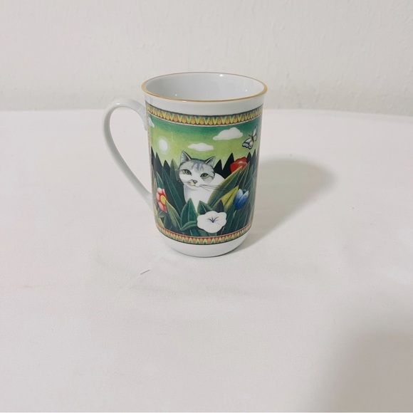 Vintage Russ Berrie Four Seasons Majestic Cat Mug Coffee Tea Beautiful Green