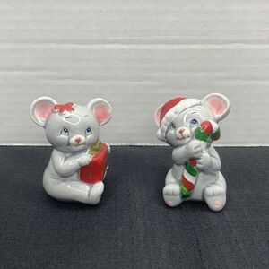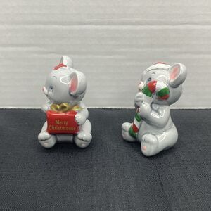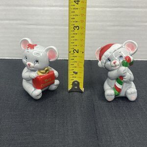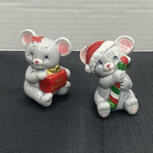 Vintage Russ Berrie Small Figurines Mouse Mice Merry Christmas Set of 2 Ceramic