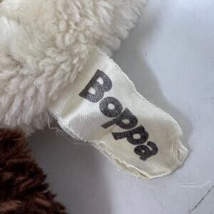 Vintage Russ Dog Plush 1977 Boppa 7" Cream Puppy Nutshell Bean Bag Laying Down in gently preowned condition from a smoke-free home. Nose loose as shown.