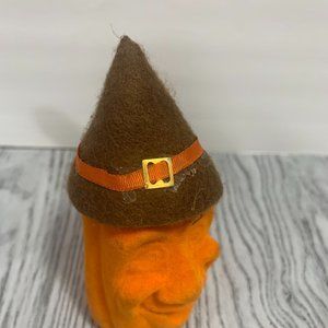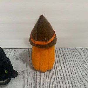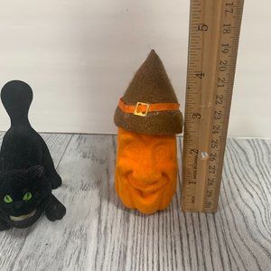 Vintage Russ Flocked Smiling Black Cat Green Eyes And Pumpkin Figures
