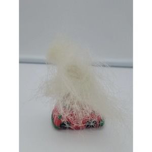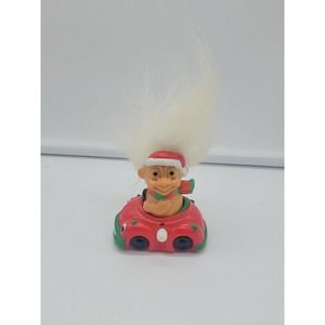 Wind up Troll in car wearing santa hat with white hair. Car winds up and moves but it stick when turning