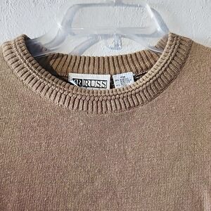 Vintage Russ Petite Womens Tan Sweater Wool Acrylic Blend Medium Pullover