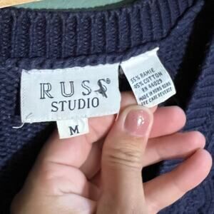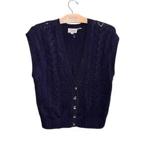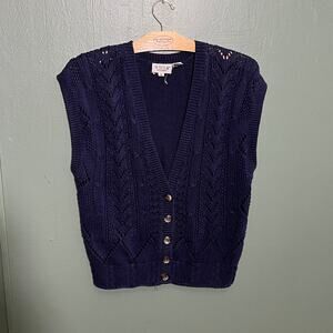 Vintage Russ Studio Navy Knit Vest Cable Knit Sweater Size M