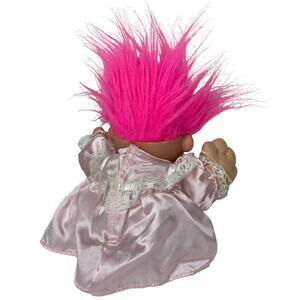 Vintage Russ Troll Doll Pink Hair with Pink Satin Dress 16"