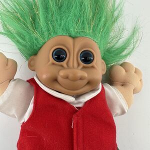 Vintage Russ Troll Kids Doll 10 Inches Plush Green and Silver Hair Soft Body Hard vinyl plastic face. Comes with clothes as shown. No stains rips or tares. Excellent Preowned condition and great Display piece. Great addition to any collection. See all available photos.