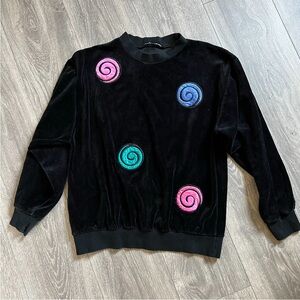 Vintage Russ velour swirl crewneck sweatshirt top.