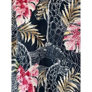 Button, lined, plus size, women, red, pink, green, black, white, cream, tan, lined, lightweight, shoulder pads, giraffe, zebra, jungle, tropical, Africa, arty, collar, collared, 3/4 sleeve, cuff, cuffed.