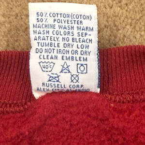 This Vintage Russell Athletic Coca Cola Men's 1980s Sweatshirt in red is a classic piece of American advertising memorabilia. Made in the USA, this original sweatshirt features the iconic Coca-Cola theme, perfect for collectors of vintage soda memorabilia. With a unisex design and large size, this sweatshirt is a timeless and stylish addition to any collection.