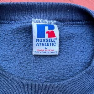 Vintage Russell Athletic Single V Blue Blank Crewneck L Sweatshirt Essential USA