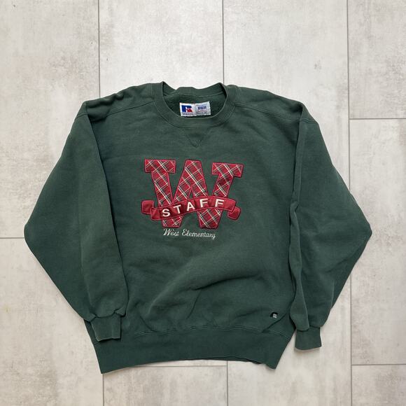 Vintage Russell Athletic Sweatshirt Green Staff West Elementary Logo Crewneck XL