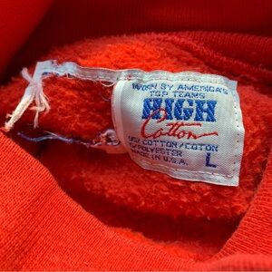Vintage red turtleneck sweatshirt size large. 95% cotton. Made in USA. 24” P2P. Very good condition, “R” logo on lower left hem missing a stitch.See pix for detail.
