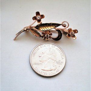 Beautiful Vintage Russian Russia Soviet USSR solid 14K 583 Two Tone Rose Pink Yellow Gold CZ Cluster Bouquet Of Flowers Brooch Pin (marked on pin "583 with star, hammer and sickle" and acid tested). It is in vintage pre-owned condition, weighs about 5.2 grams and is about 1 3/4" by about 7/8" (widest). 3 CZs are about 3mm in diameter each. (RGPBCNB)