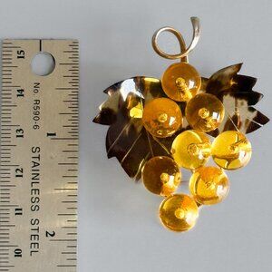 Really lovely amber brooch with carved leaves in gold tone setting made to look like grapes.