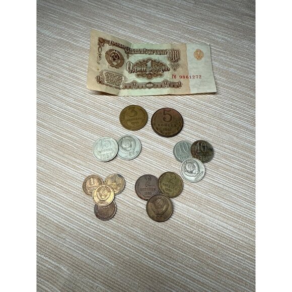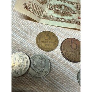 Vintage Russian Currency USSR Soviet Coins & Banknote Collection