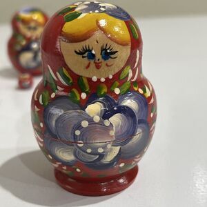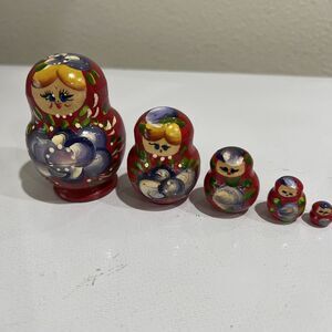 Vintage Russian Nesting Dolls Hand Painted Red 5 Piece