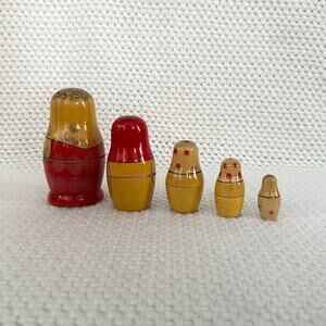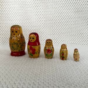 Vintage Russian Nesting Dolls Matryoshka Babushka Hand Painted Set of 5 Unmarked