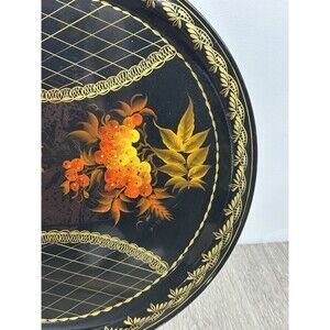 Vintage Russian Round Metal Tray Hand Painted Floral Design Decorative 12.5”
