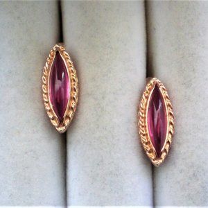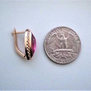 Vintage Russian Russia USSR 14K 585 Rose Gold Pink Tourmaline Marquise EARRINGS