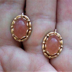 Vintage Russian Soviet USSR 14K 583 Rose Pink Gold Rose Pink Chalcedony Earrings