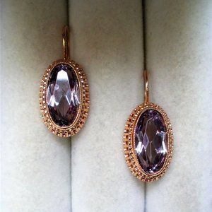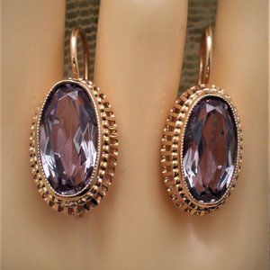 Vintage Russian USSR 14K 583 Rose Pink Gold Alexandrite Filigree Dangle EARRINGS