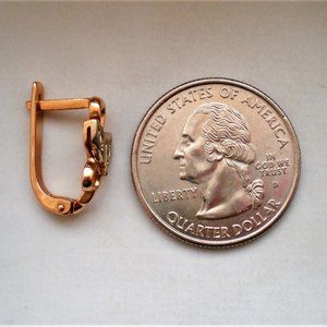 Beautiful Vintage Russian Russia Soviet USSR solid 14K 585 Rose Pink and White Gold CZ Cluster Leaf Pierced Earrings with secure Russian Lock (stamped "585 with star, hammer and sickle" and acid tested). They weigh about 4 grams and are in great vintage used pre-owned condition! Measure about 12/16" in length by 8mm in their widest. 4 CZs are about 2mm in diameter each and are placed in solid 14K White Gold setting.