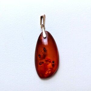 Gorgeous Vintage Russian Russia Soviet USSR solid 14K 583 Rose Pink Gold genuine Baltic Honey Amber PENDANT (marked "583 with star, hammer and sickle" and acid tested). Pendant is about 2" in length (with bail). Amber stone is about 1 1/2" in length and about 3/4" in its widest. Pendant is in vintage used pre-owned condition. Some chips and scratches on the back of amber stone.