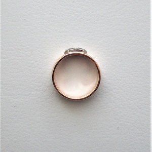Gorgeous Vintage Russian Soviet USSR Original solid 14K 583 Rose Pink and White Gold Genuine Diamond Wedding Band Ring about size 6-6.25 (marked "583 with star, hammer and sickle" and acid tested). 2 Genuine Diamonds are about 2.5mm in diameter each and are set in solid 14K 583 White Gold setting. Ring is about 5mm wide, weighs about 4.3 grams and is in great MINT vintage pre-owned condition.